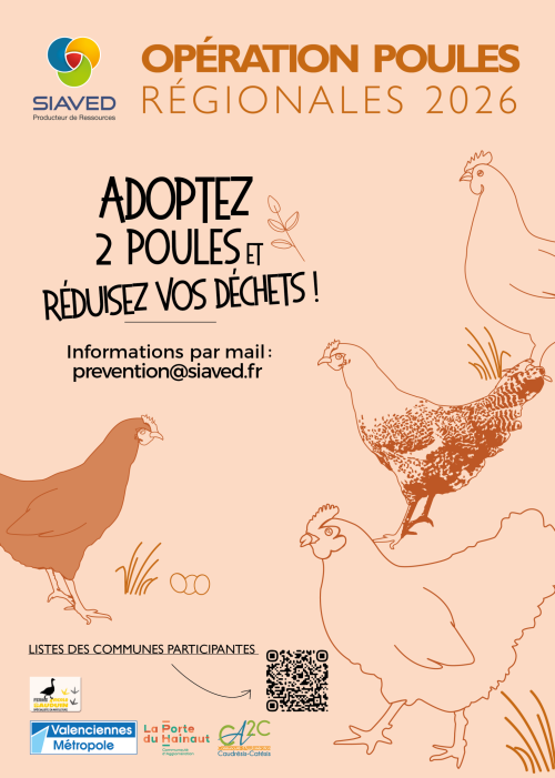 Le SIAVED propose aux habitants de la commune, d'adopter 2 poules de races régionales. Cette action permet à la fois de préserver les races locales et de réduire les déchets ménagers.